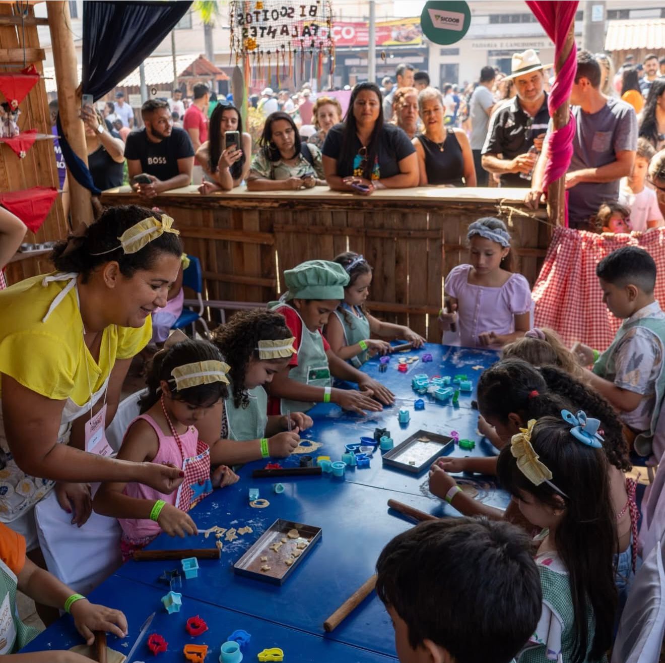 A tradicional Festa do Café com Biscoito em São Tiago-MG costuma oferecer oficinas para crianças, como a "Oficina dos Biscoitos Falantes". Com base na edição de 2025, o evento inclui atividades lúdicas, como a "fábrica de biscoitos", onde crianças podem criar seus próprios biscoitos degustar e levar pra casa,